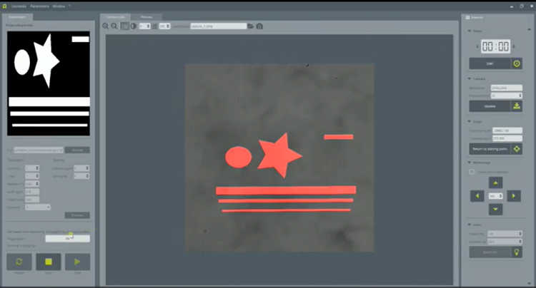 3、非接觸式、無掩模UV投射:可靈活控制UV的照射強度、照射時間和照射區(qū)域對基質進行蝕刻、切割和固化??梢詫崟r觀看蝕刻過程,及時調整和優(yōu)化實驗條件。